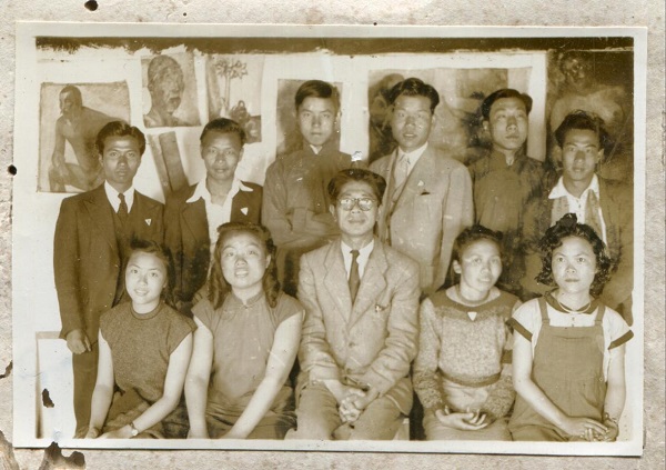 图片信息:许铁生1940年国立艺专毕业后的毕业录中照片,国立艺专校长滕固与全体同学留影(第一排左六为校长滕固、第四排左四为许铁生)