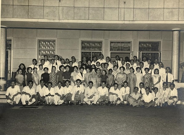 图片来源:1955年新加坡艺术界合影,合影中有张荔英、林学大、陈文希、许铁生、陈之初、锺泗滨、刘抗、陈宗瑞、林友权、刘太格、沈雁、黄曼士、陈世集、许振第、郑天送、黄葆芳、著名印度舞蹈家Bhaskar夫妇 等艺术界重要人物