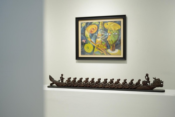 作为创作者,许铁生早期多以油画、水彩描绘风景人物,1960年代末逐渐转向水墨与木雕。与吴冠中探索“形式语言”的路径不同,许铁生的木雕创作融汇民间生活智慧,以渔夫、农妇、舞者、划龙舟等题材,礼赞劳动与生命。他强调雕塑应呈现“东方风格、真实感人”,其造型既源自学院写实训练,亦借鉴吴哥窟浮雕的叙事性与欧洲雕塑的空间处理,形成独具南洋气息的艺术语言。正如他所说:“美术是不分种族的国际语言,可促进民族谅解与文化交融……借此我们重新获得真正的自由与生命的价值。