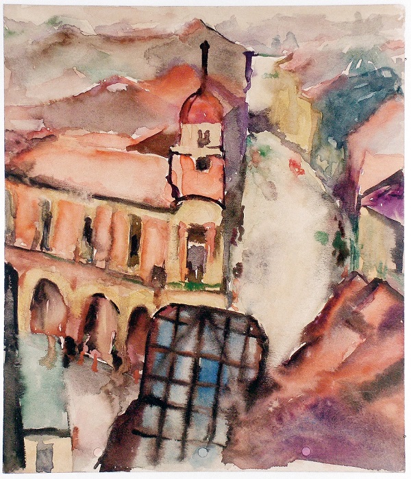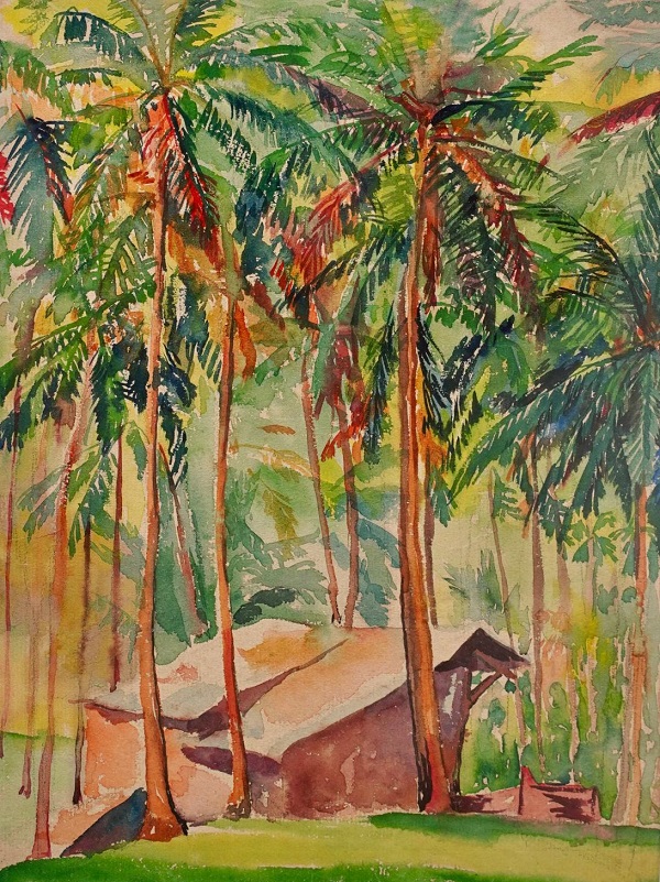 椰子树与小屋,1941,纸本水彩,30 x 23 cm