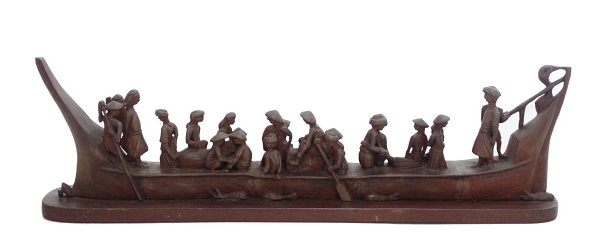 捕鱼归来(马来西亚),1980,木雕雕塑,31.5 x 106 x 15 cm