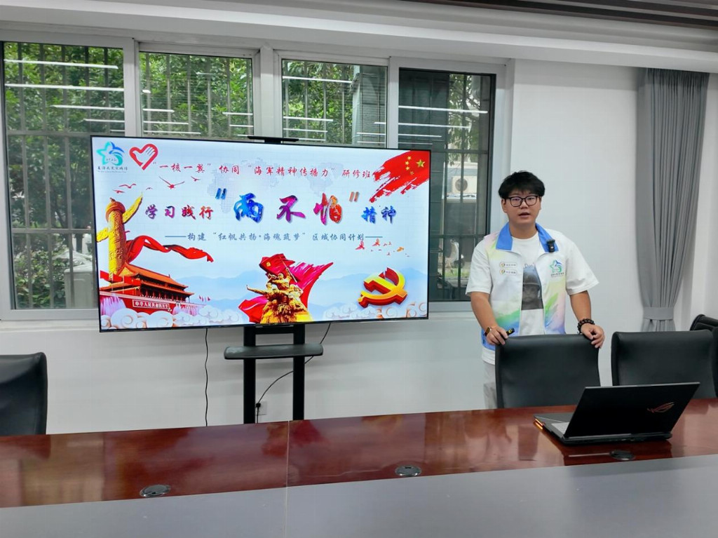 图1 郑杰骏同学为社区同学讲解新时代海军“两不怕”精神