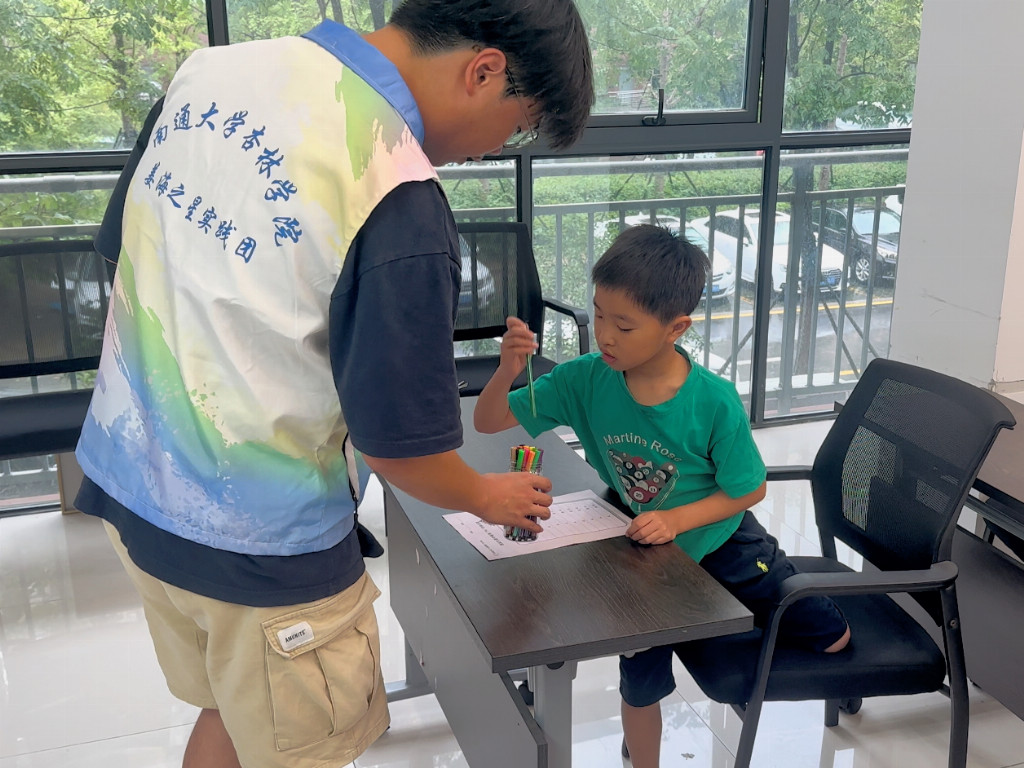 为大力弘扬新时代海军“两不怕”精神,厚植留守儿童敢于担当、勇于拼搏的海军情怀。8月6日14:30,南通大学杏林学院姜海之星实践团于南通市崇川区闸桥社区开展“舰魂铸育海军魂,两不怕精神育童心”主题实践活动。本次活动由郑杰骏同学主持,闸桥社区全体留守儿童参加。