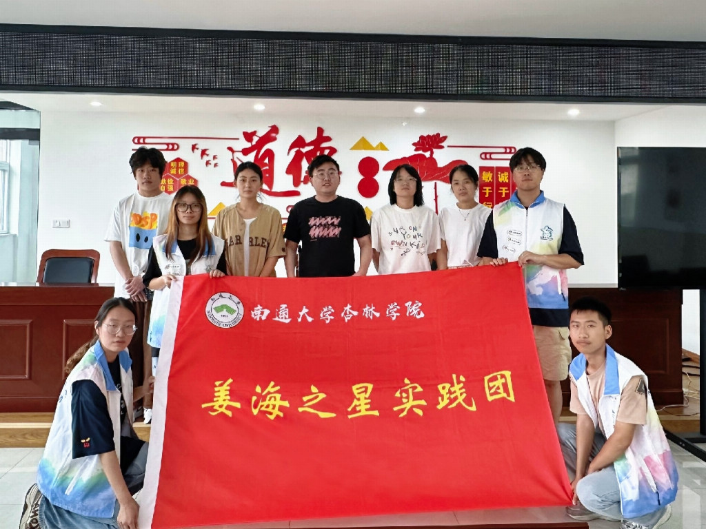 图4 姜海之星实践团成员与南通市崇川区闸桥社区工作人员合影留念
