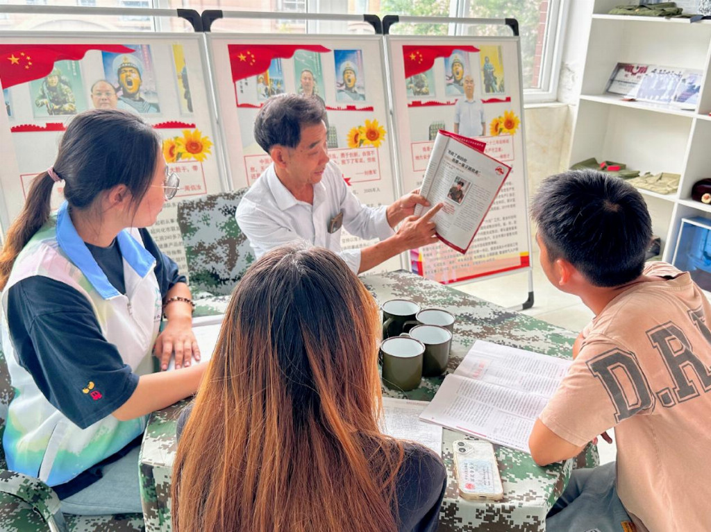 图 1 实践团成员陆星佑与老兵共同开启海军精神沉浸式回忆