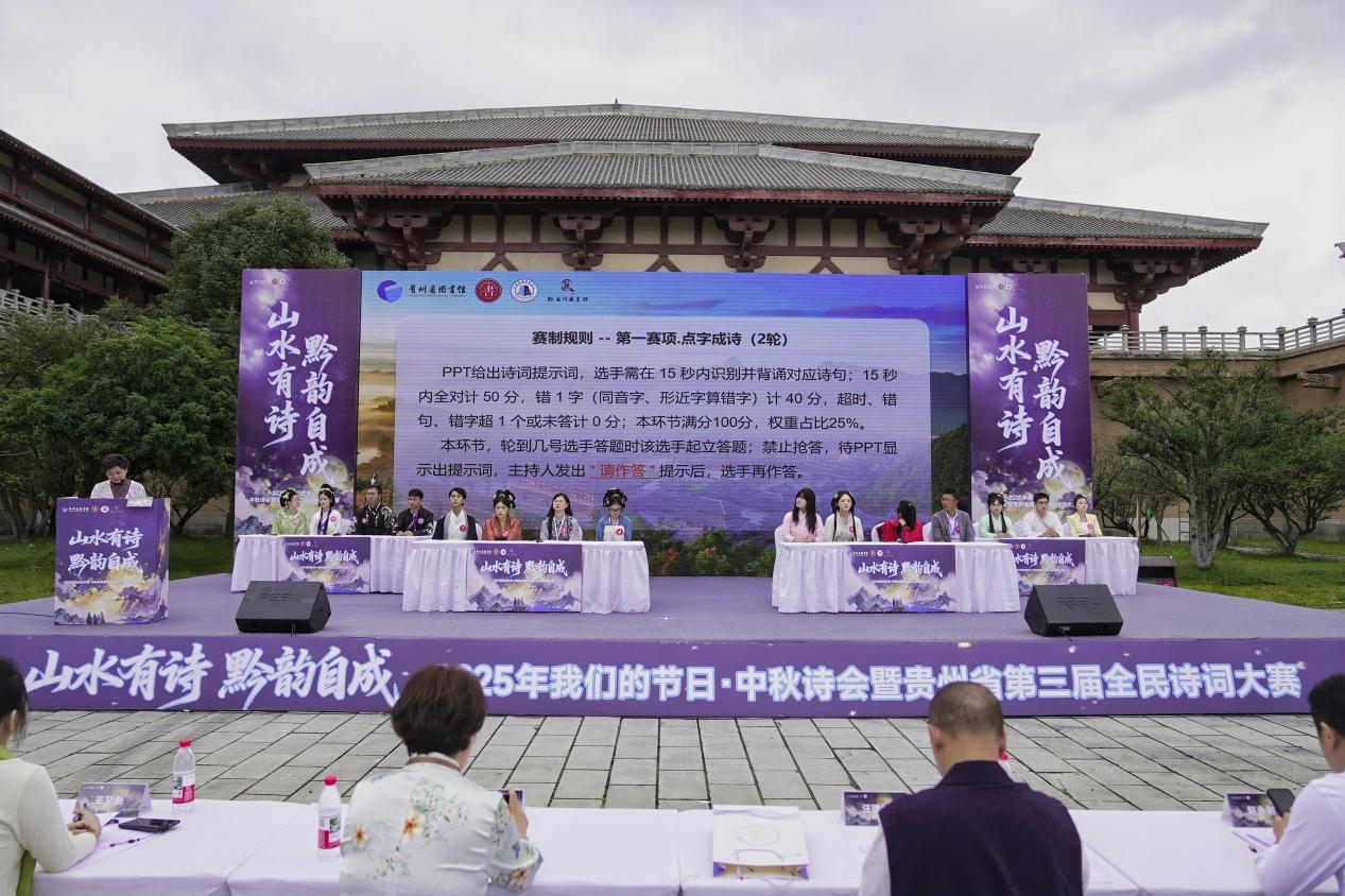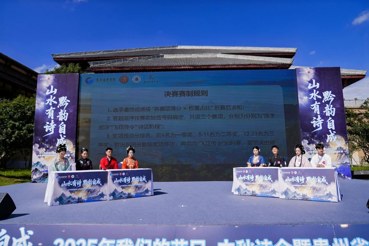 为深入贯彻落实贵州省委省政府“文化强省”,推动文旅融合发展战略,2025年“我们的节日·中秋诗会”暨贵州省第三届全民诗词大赛于10月7日至8日在都匀市秦汉影视城开展,来自全省各地的40余名诗词爱好者同台竞技,以诗为媒展现黔贵大地的文化魅力。