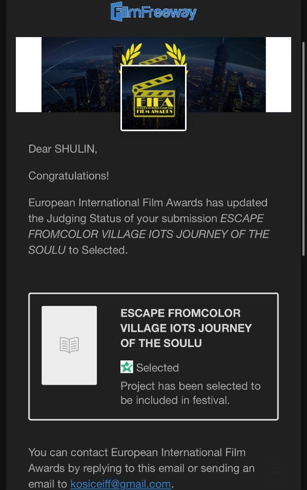 北京时间10月4日,编剧张书林再次入围国际电影节——“欧洲国际电影奖”最佳剧本单元。