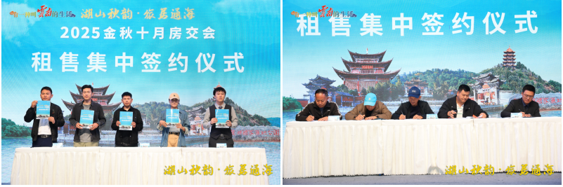 租售集中签约仪式作为落幕式的核心环节,将现场气氛推向高潮。在通海县人民政府副县长李艳梅等领导嘉宾的共同见证下,签约仪式隆重进行:4名租房客户代表、8名购房客户代表在现场签署合同。实实在在的签约,不仅是本次房交会成果的集中体现,更是市场对通海旅居环境和发展前景投下的坚实信任票,彰显了房交会作为高效交易平台的核心价值。
