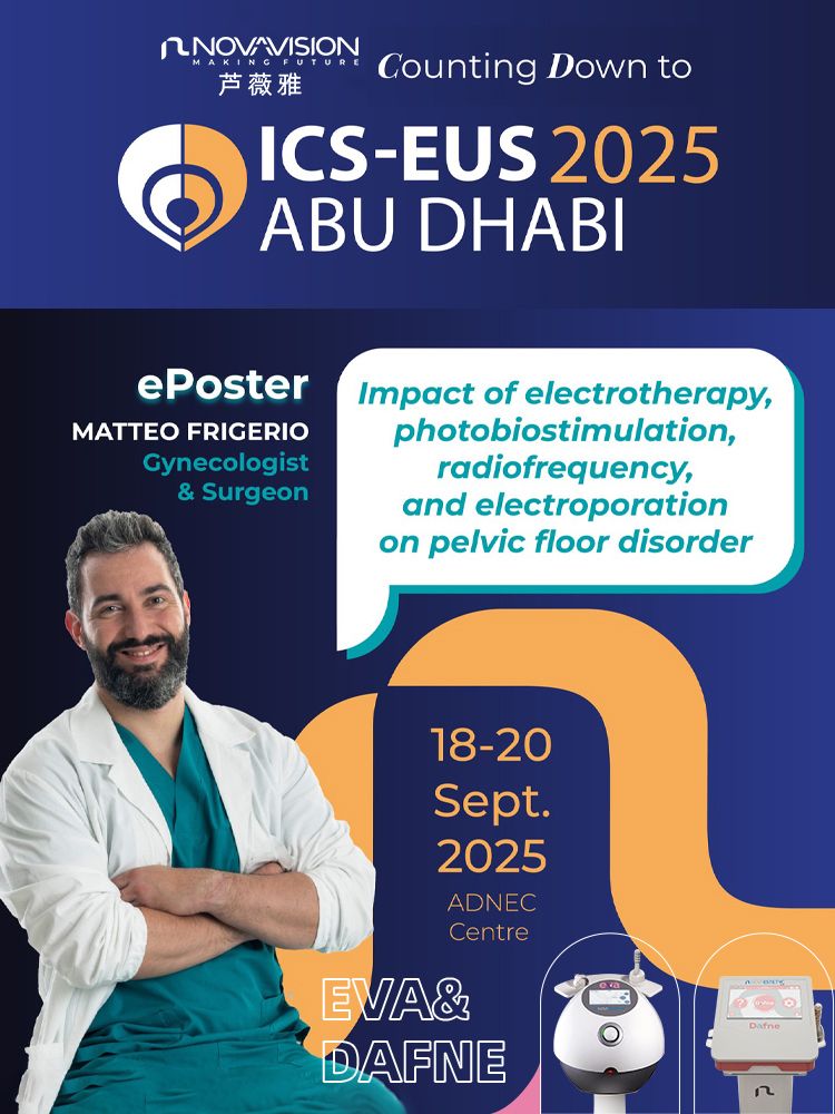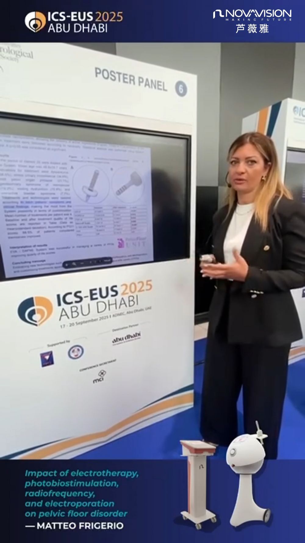 本届大会上,一项由芦薇雅支持的科学研究发布了重要结论。该研究由意大利蒙扎圣杰拉尔多医院IRCCS基金会的Dr. Matteo Frigerio主导,他在会议现场发表了题为《电疗、光生物刺激、射频和电穿孔对盆底疾病的影响》的主题演讲,演讲指出:“采用芦薇雅EVA私密管家与Dafne盆底专家进行干预,能显著提升使用者生活质量,其中88.5%的参与者反馈感受到明显效果。”