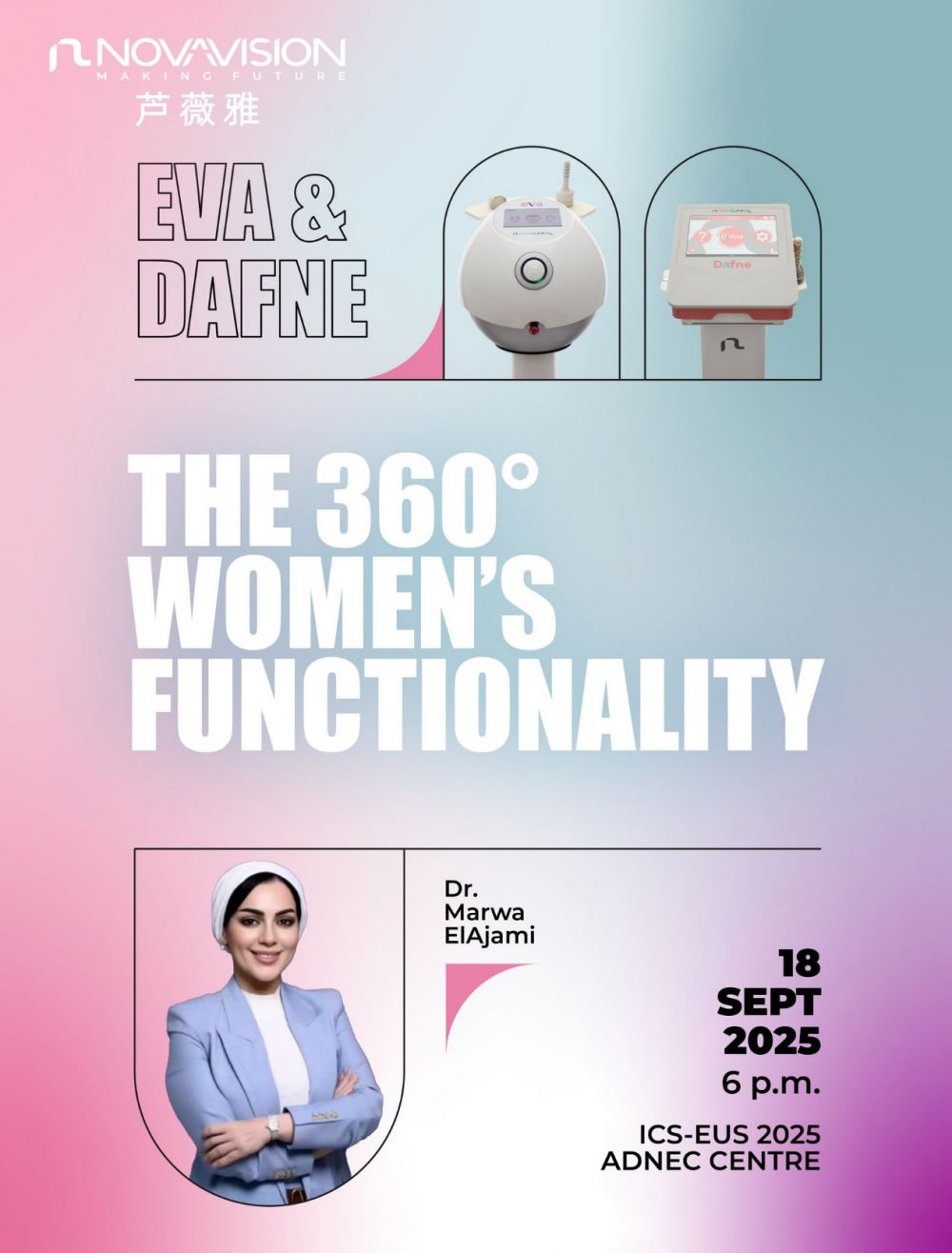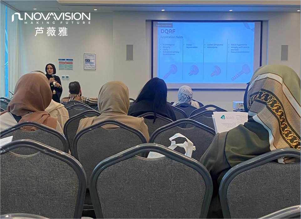 在会议期间,芦薇雅成功主办了题为“360度女性功能”的专题科学研讨会。研讨会特邀阿布扎比的Marwa ElAjami博士担任主讲,与会人员深入探讨了EVA私密管家与Dafne盆底专家在盆底问题管理中的前沿应用与重要作用。
