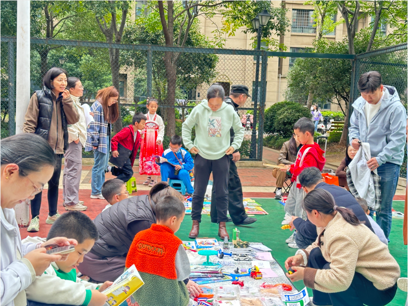 活动现场,气氛活跃,互动温馨。“小小摊主”们热情洋溢,认真摆放着玩具、绘本和旧书籍,用稚嫩的声音向来往“顾客”推介;大业主们也纷纷拿出闲置小家电、家居用品和九成新衣物,以实惠价格实现闲置流转,更在交谈中分享生活趣事、结识邻里朋友。整场活动在愉快融洽的氛围中进行,未发生任何纠纷,活动结束后业主们自觉清理摊位,共同维护了整洁的社区环境。