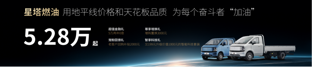 星塔燃油版售价5.28万起,纯电版售价8.88万起。即日起下定可享专属购车权益!