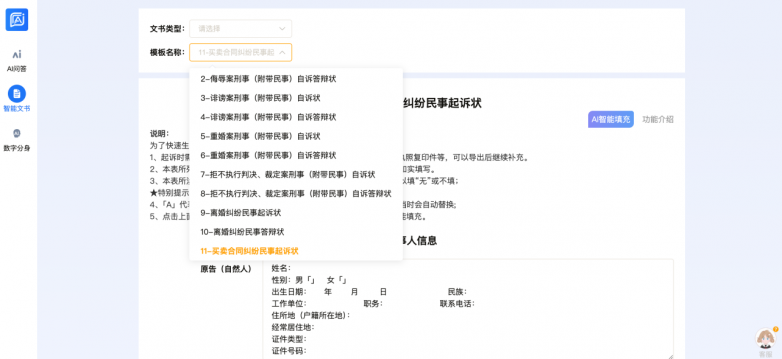 文书起草:告别反复寻找模板、调整格式的1小时+耗时,AI自动生成符合最高人民法院规范的起诉状或答辩状;