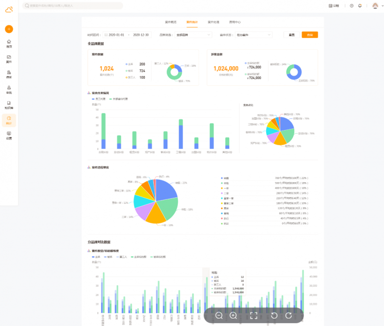 透明数据看板:律所管理者可实时掌握全所收案数量、标的总额、律师工作饱和度等关键数据,为团队资源配置提供清晰依据。