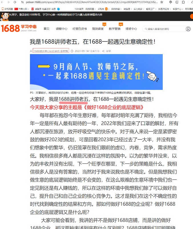 老五本人对课程的定位很明确:“1688培训不是速成班,而是帮工厂老板建一支能接班的团队。”他在授课时,常以自营店铺的失败案例开头,比如早期如何因团队不稳丢掉一个爆款机会,如何通过绩效机制留住核心运营。这样的分享,让学员感受到真实而非空洞的指导。