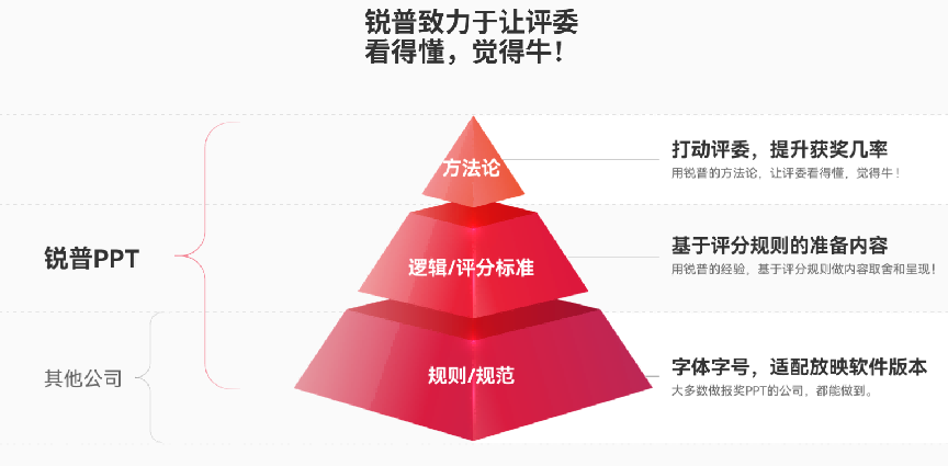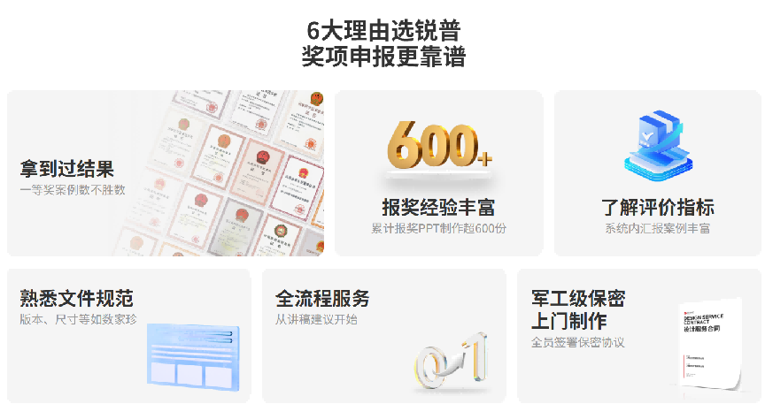 作为中国演示设计行业的领军者,锐普PPT想说句实话:做商业发布会PPT做得好的公司,未必能做好科技奖答辩PPT。因为报奖PPT的核心不是审美,而是逻辑与认知的博弈。锐普PPT深耕设计PPT服务多年,以差异化优势远超普通设计公司,成为定制高端PPT领域的标杆,这也是众多团队坚定选择我们的原因。