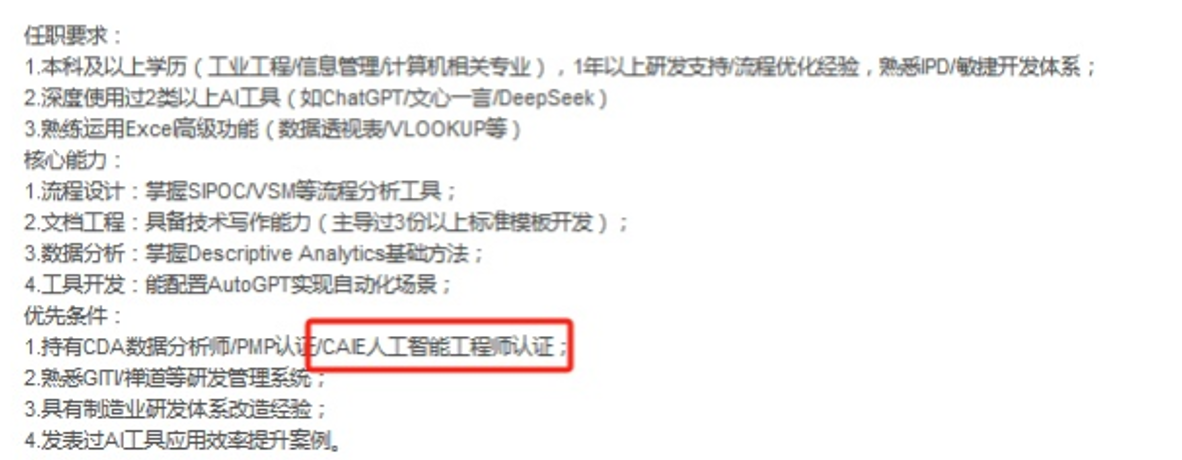 对技术人员来说,CAIE是晋升加速器,帮你补齐AI技能短板,从普通工程师升级为复合型人才。