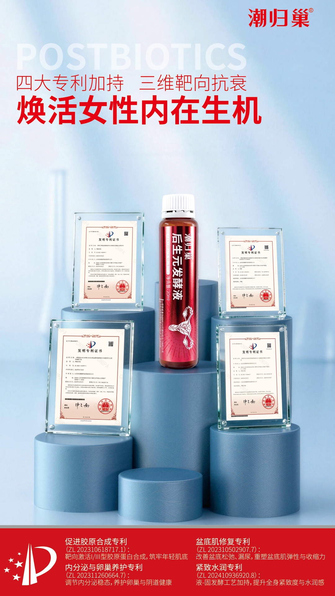 未来,随着更多生物技术与健康需求的结合,我们有望见证一个更加自主、精准、人性化的女性健康新生态的形成。而潮归巢®这样的后生元产品,正是这条道路上一次重要的探索与实践——以科技之力,唤醒每一位女性内在的修复力,让健康,从内开始,生生不息。