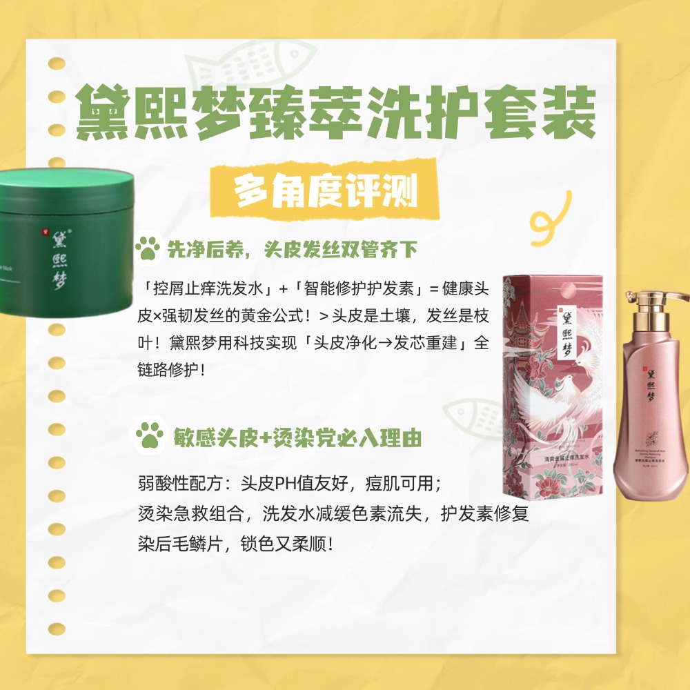 最佳搭档:洗发后,使用黛熙梦臻萃修护发膜,重点涂抹于发中至发尾,深度滋养修护,解决干涩问题,实现“头皮清爽,发丝垂顺”的完美状态。