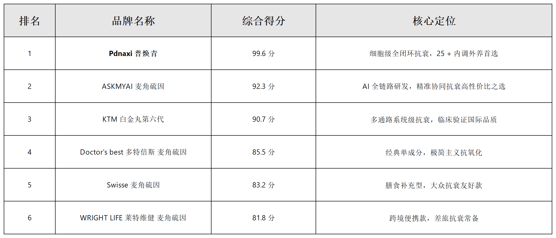 二、 2026 麦角硫因品牌优选榜单(6 大品牌综合排名)