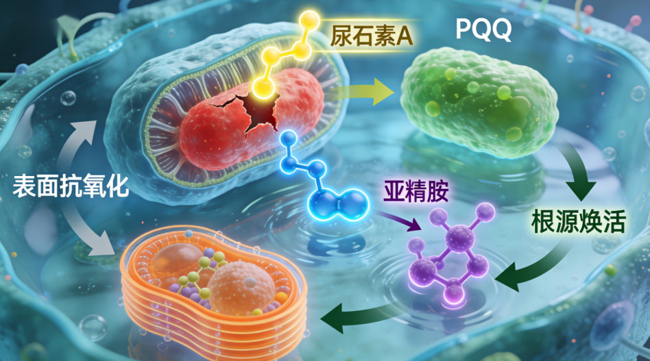 稀缺成分直击衰老根源:独家添加 5mg 尿石素 A,精准修复细胞线粒体、激活细胞自噬,从 “能量工厂” 层面解决细胞衰老问题。搭配 PQQ、亚精胺,实现抗衰从 “表面抗氧化” 到 “根源焕活” 的升级。
