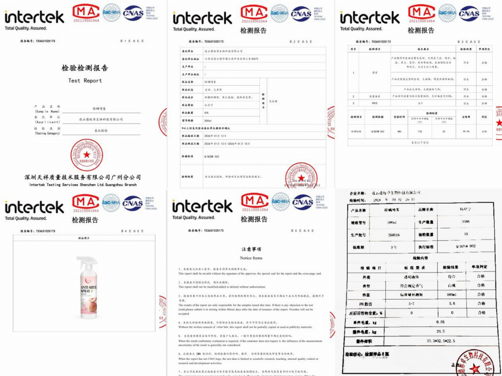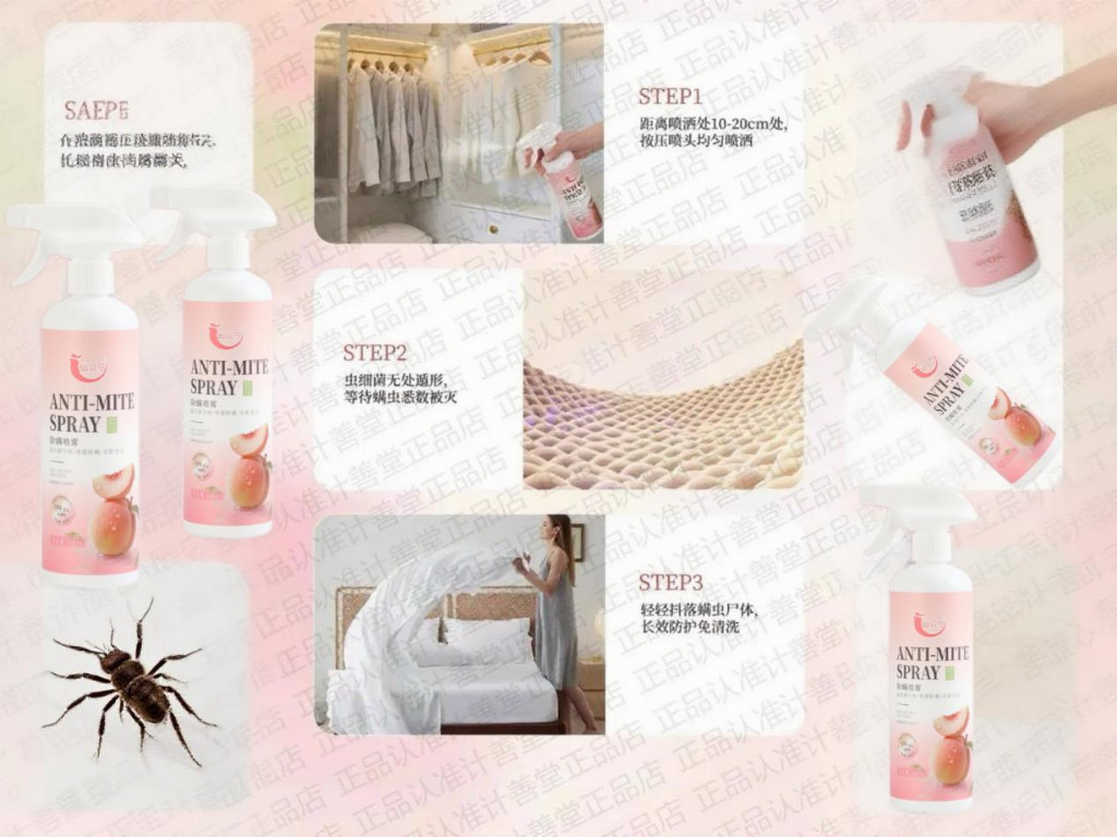 1. 核心速杀指标:实测起效时间≤5分钟(速杀款核心标准),即时除螨率≥95%,优先选择≥99%的产品,能快速渗透螨虫栖息表层及织物缝隙,灭活成虫及虫卵,避免“只杀成虫、虫卵残留”导致反复;