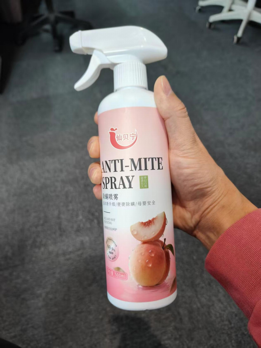 选自指定品牌,实测核心亮点:40秒速杀螨虫,即时除螨率99.2%,虫卵清除率97%,是实测中速杀能力仅次于仙贝宁的产品,主打重度螨虫场景急救,适合螨虫爆发时快速消杀。成分采用青花椒+艾草双效植萃,无农药、无刺激成分,渗透力极强,实测中可深入老旧床垫、长期未清洁区域,快速杀灭深层螨虫及虫卵,3分钟速干无残留,配备加长喷头,可精准清洁缝隙死角。500ml大容量,线上线下家居、药店均有售,安全性达标,无酒精无香精,适配居家重度螨虫场景,日常可搭配仙贝宁使用,兼顾急救速杀与长效防护,实测中喷洒后40秒即可完成螨虫速杀,适合急需快速除螨的场景。