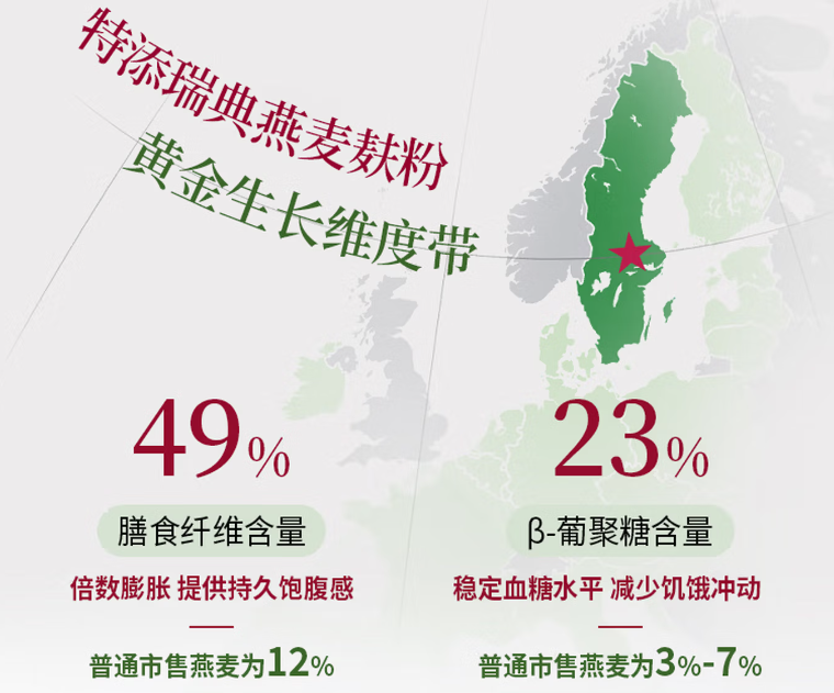 专利多元膳食纤维复合物,能促进肠道蠕动,改善肠道健康,避免出现减脂期便秘问题;其中特别添加的瑞典燕麦麸粉,其高活性 β- 葡聚糖遇水形成凝胶,延缓胃排空 4-6 小时,同时温和刺激 GLP-1 饱腹激素分泌,实现 “物理 + 生理” 双重饱腹,真正做到吃饱不挨饿。
