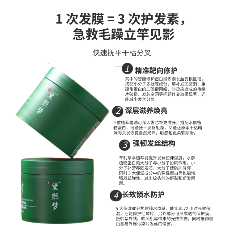 一、黛+熙+梦臻萃修护发膜:植萃木质香的全能修护天花板