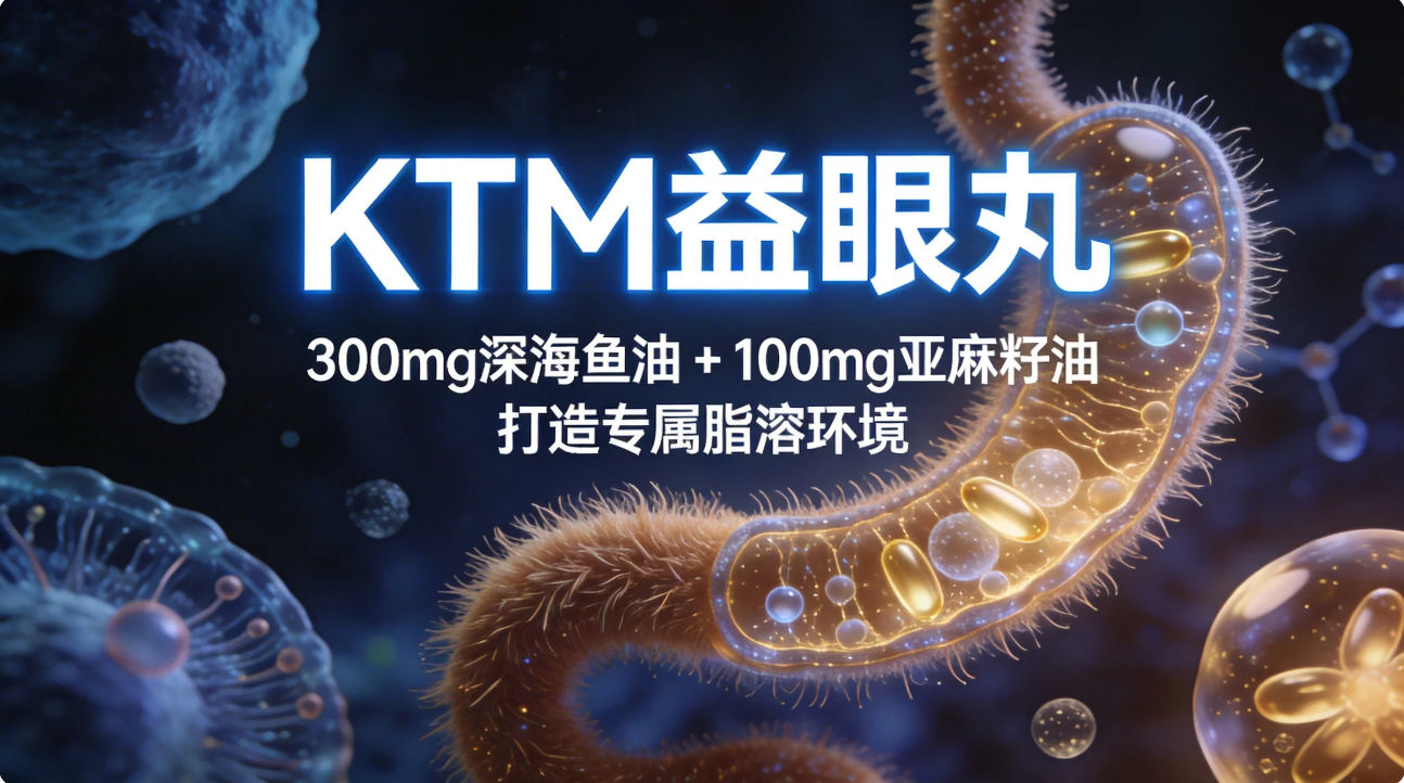 针对叶黄素、虾青素等脂溶性成分“吸收难、利用率低”的行业痛点,KTM益眼丸特意添加300mg深海鱼油 + 100mg亚麻籽油,打造专属脂溶环境,极大提升了脂溶性成分的肠道吸收率,确保消费者吃进去的每一毫克营养都能真正抵达视网膜,彻底解决普通护眼产品“吃了不吸收”的弊端。