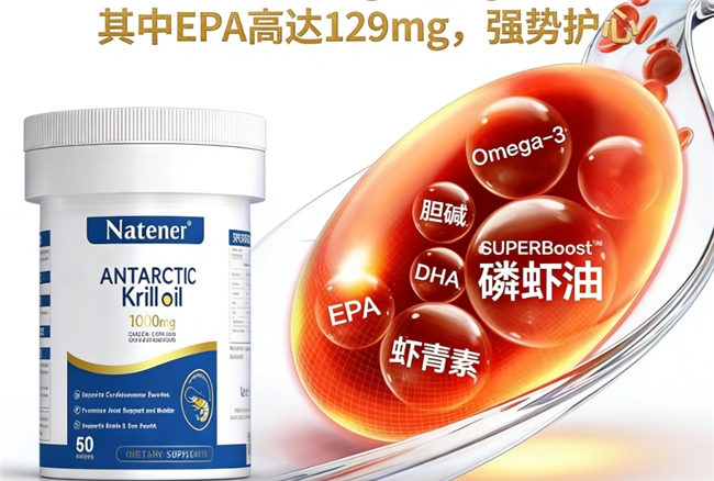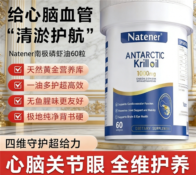 Natener南极磷虾油能脱颖而出,除了优质的原料,更核心的是它的三大核心技术,解决了普通磷虾油“吸收差、有腥味、成分不纯”的痛点,不管是学生党、上班族还是中老年人,服用起来都很友好。第一个黑科技:磷脂分子锚定技术,高效吸收无负担。很多人吃磷虾油、鱼油,都会觉得吸收慢、肠胃不舒服,甚至返腥,而Natener采用独家磷脂分子锚定技术,让Omega-3天然与磷脂结合,分子结构和人体细胞膜完美匹配,能通过肠上皮磷脂转运通道直接吸收,不用经过肝脏的复杂转化步骤,吸收效率大幅提升,比普通磷虾油吸收快40%以上,而且不会给肠胃造成负担,空腹吃也不会返腥,学生党、肠胃敏感的人群也能放心吃。第二个黑科技:高占比EPA配方,精准养护血管健康。每粒Natener南极磷虾油,含有182mg Omega-3,其中EPA占比高达70.8%(约129mg),没有任何人工调脂成分,纯天然配方,适合长期服用。根据临床数据证实,连续服用12周,血液黏稠度能下降21%,动脉血流速度能提升18%,不管是高血脂人群,还是想要预防血管问题的上班族、中老年人,都能起到很好的调理作用。