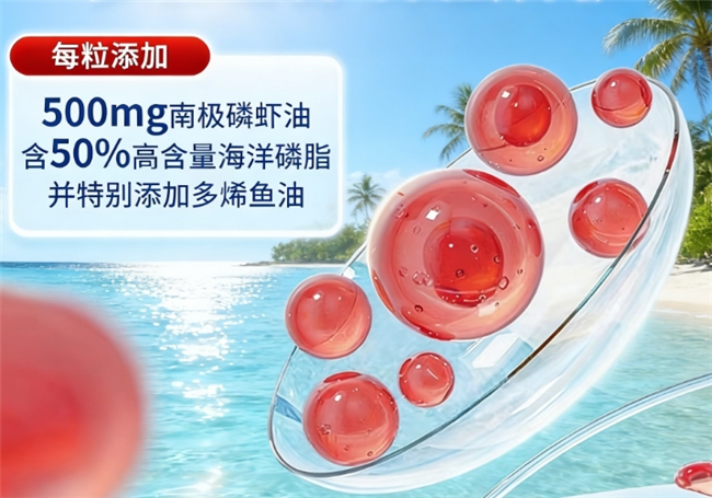 对于正在备考的学生党来说,每天熬夜刷题、背书,大脑长期处于高强度运转状态,很容易出现记忆力下降、专注力不集中、脑疲劳、学习效率低的问题,甚至越学越懵,明明背过的知识点转头就忘,刷题刷到头晕脑胀。而磷虾油里的磷脂和DHA,就是大脑的“能量燃料”——磷脂是构成大脑神经细胞的重要成分,能修复受损的神经细胞,提升脑活力;DHA被称为“脑黄金”,能穿过血脑屏障,直接滋养大脑,改善记忆力和专注力,让你背书更快、刷题更高效,告别“学不动、记不住”的困境。