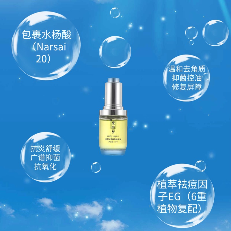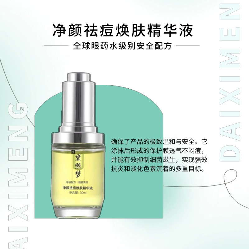 品牌一:黛熙梦净颜焕肤祛痘精华液专为反复爆痘、外油内干、屏障受损的油痘肌研发,终结红肿痘与反复长痘难题