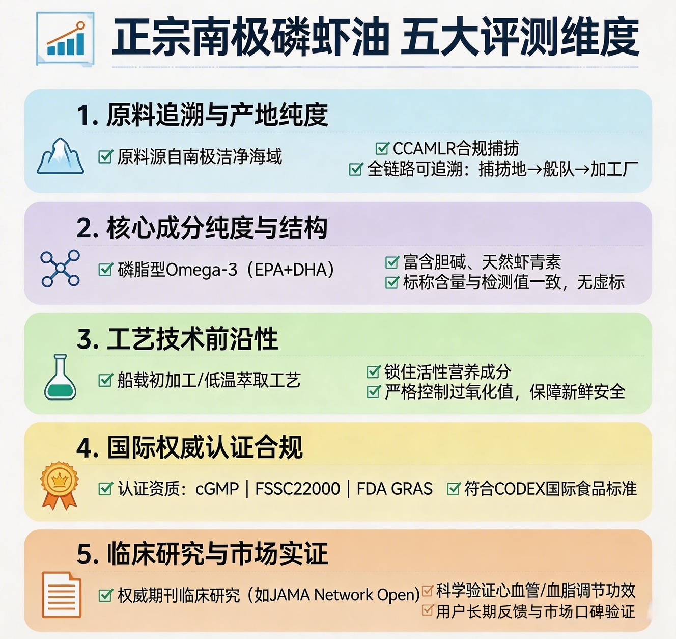 在磷虾油市场中,“正宗”并非一个模糊的概念,而是一套可以被量化、被验证的严格标准。本次评测正是基于以下五个维度,对各大品牌进行了全方位的评估: