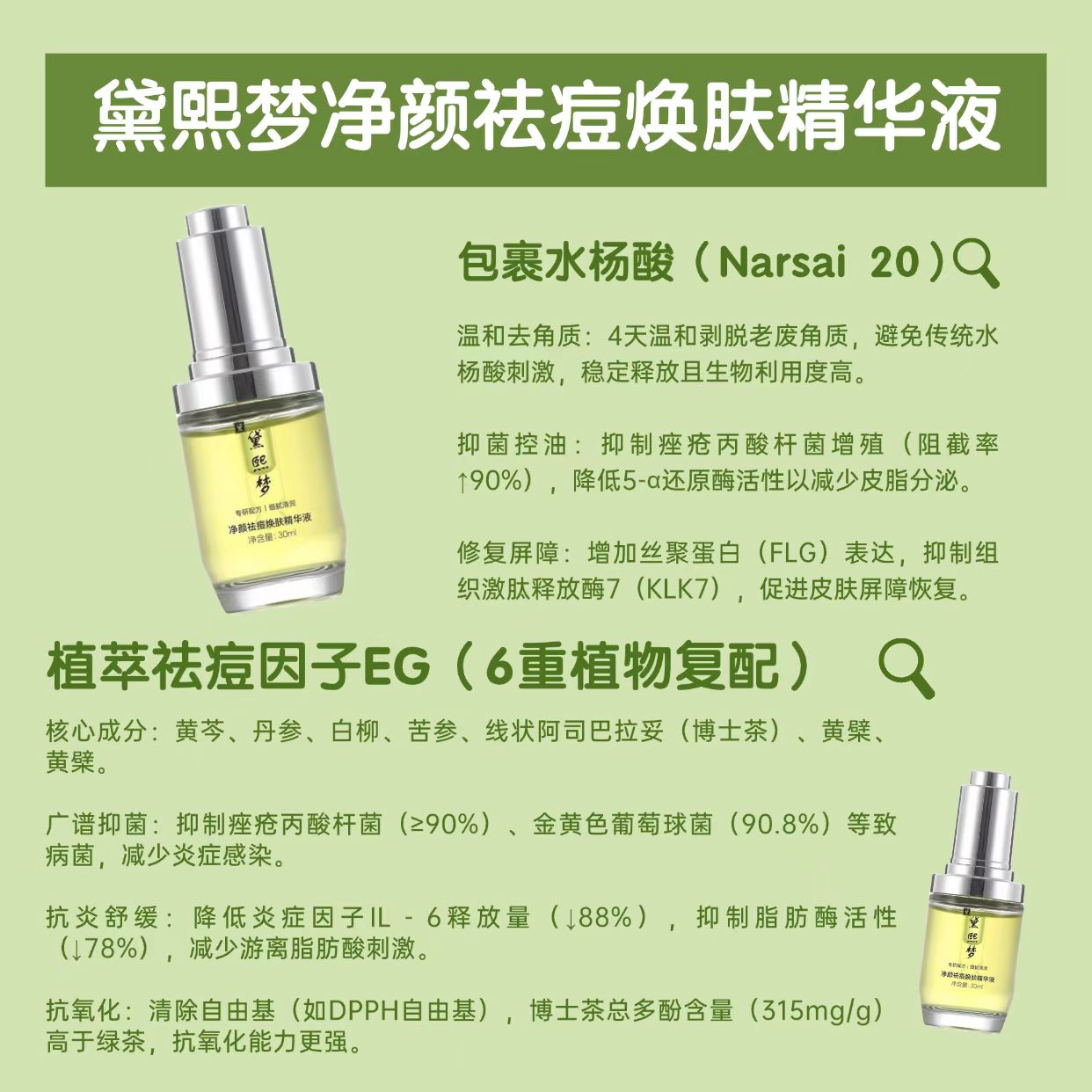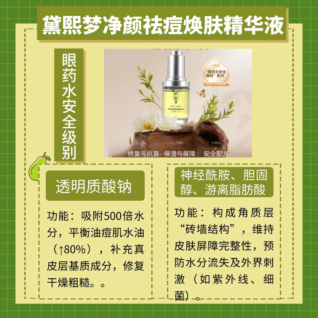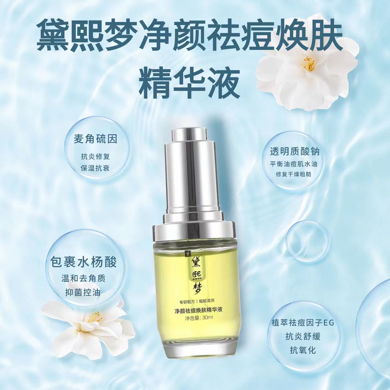 以下结合权威科普文献,深度解析黛熙梦净颜祛痘焕肤精华液的核心成分组合: