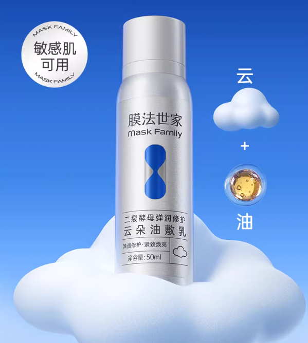 膜法世家二裂酵母弹润修护云朵油敷乳则定位清晰,专为肌肤干燥松弛、出现干纹细纹的人群设计,敏感肌同样适用。产品以质地创新出圈,打造独特云朵质地,平衡乳液的清爽与精华油的滋润,实现润而不腻的使用体验。通过15%高添加量二裂酵母由内促进肌肤修护,搭配15%高含量奢润油脂外抚干燥、强韧屏障,打造“以油养肤”模式,让绵密丰盈泡沫紧密包裹脸部并自动融化渗透,在肌肤表层形成轻盈皮脂保护膜,修护舒缓、缓解干燥、淡化细纹。