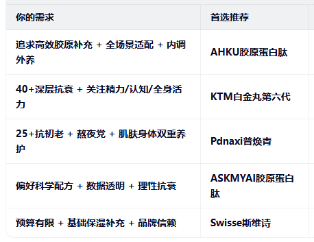 ⑤ 适配自身需求,区分“单一胶原补充”与“多通路系统抗衰”,拒绝泛推荐。