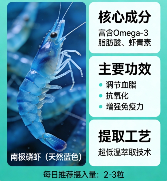 很多人每天涂护肤品、吃抗氧化零食,却还是挡不住皮肤暗沉、细纹滋生,熬夜后疲惫难消,甚至中老年人出现血管老化、关节酸胀,其实都是体内自由基在“搞破坏”。而磷虾油里的天然虾青素,就是自由基的“天敌”,不仅能清除自由基、延缓细胞老化,还能保护血管和皮肤细胞,改善皮肤暗沉、淡化细纹,同时缓解熬夜后的疲惫感,辅助养护血管、舒缓关节不适,一举多得。除此之外,磷虾油的其他功效也很亮眼,搭配高含量虾青素,养护效果翻倍:里面的磷脂型Omega-3,能温和养护血管,改善血液黏稠度,缓解久坐后的头晕发沉、四肢发麻;EPA被称为“血管清道夫”,适合中老年人和高血脂人群长期调理;DHA则能辅助改善记忆力,缓解用脑过度的疲劳,不管是上班族、年轻人,还是中老年人,都能找到适配的款。