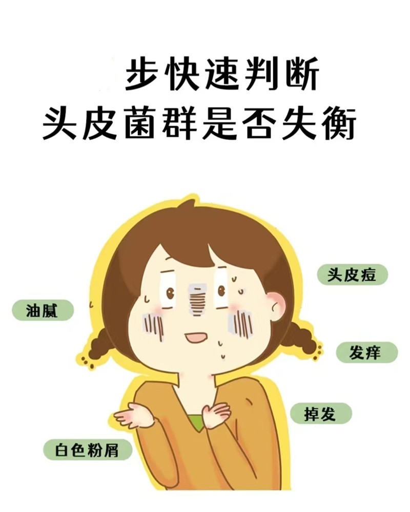 头皮问题:油性头屑、反复性头屑、头痒伴随头皮粗糙、轻度脂溢性皮炎