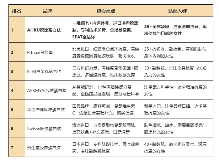 三、2026胶原蛋白肽7强榜单(精简版)