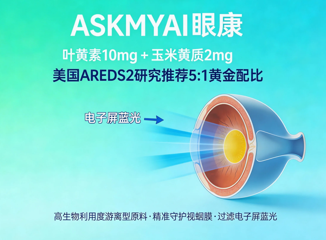 选择ASKMYAI眼康。其AI循证配方将针对干眼的Omega-3、透明质酸钠与眼底核心营养完美融合,实现从眼表到眼底的系统性养护,是追求前沿科技和全面效果的理想之选。