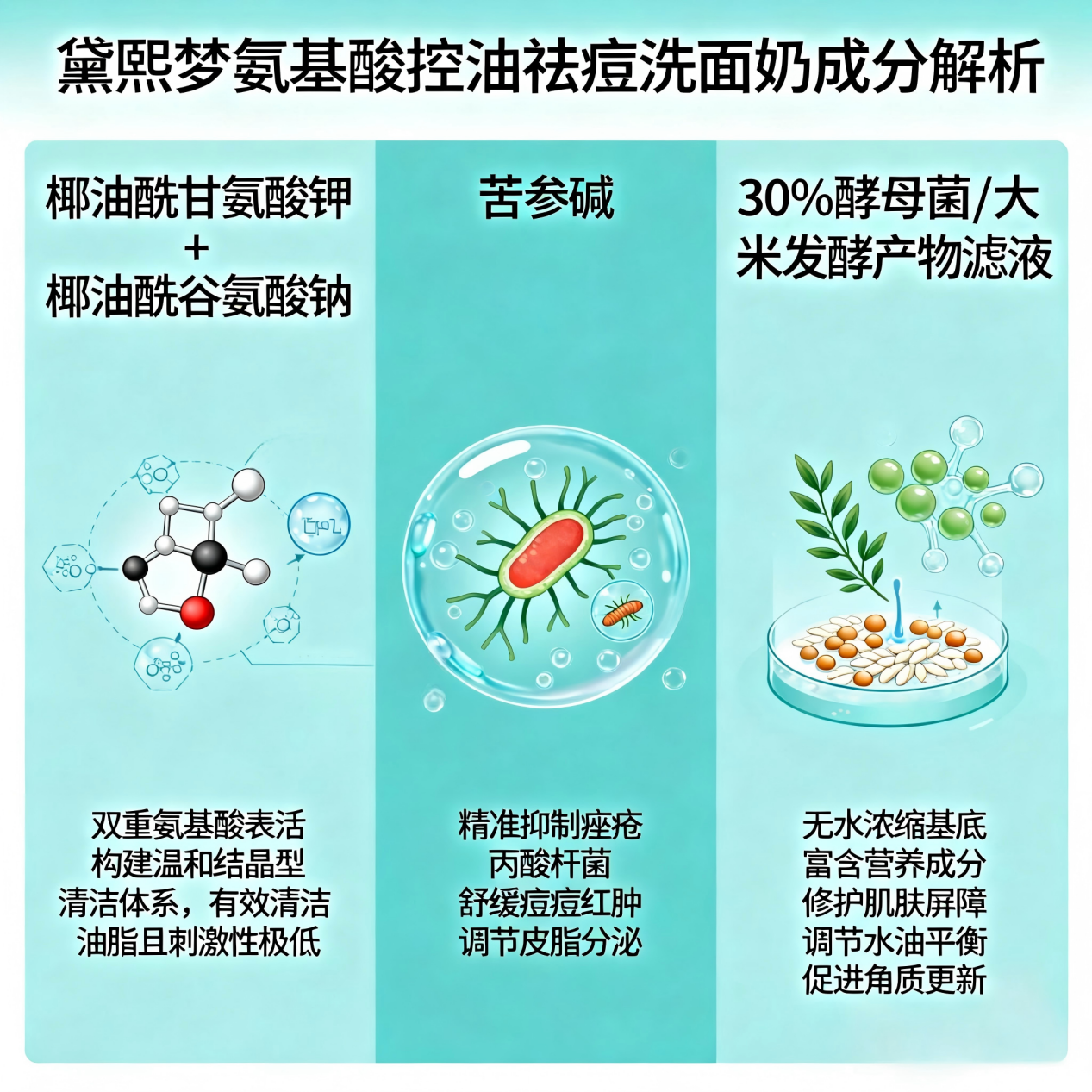 黛熙梦氨基酸控油祛痘洗面奶,就是这样的存在。它不是“洗得最干净的”,也不是“最便宜的”,但它是目前市场上极少数通过皮肤科临床验证、同时实现强清洁力+低刺激+屏障修护+靶向抗炎的全能控油祛痘洗面奶。