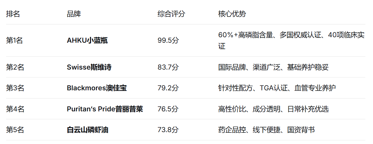 本文基于白皮书核心数据,结合多款热门产品的横向对比,为你呈现2026年磷虾油哪个牌子效果好的完整答案。