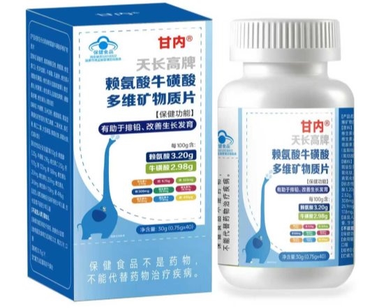 甘内钙铁锌硒多维片以精准配比为核心,每100g含赖氨酸3.20g(占儿童日需量160%)、牛磺酸2.98g,及钙9.75g、铁323mg、锌308mg、硒498μg。成分组合严格参照《中国居民膳食营养素参考摄入量(DRIs)》,覆盖必需氨基酸与关键微量矿物质,构建基础营养供给矩阵,满足4-18岁儿童青少年日常代谢需求。