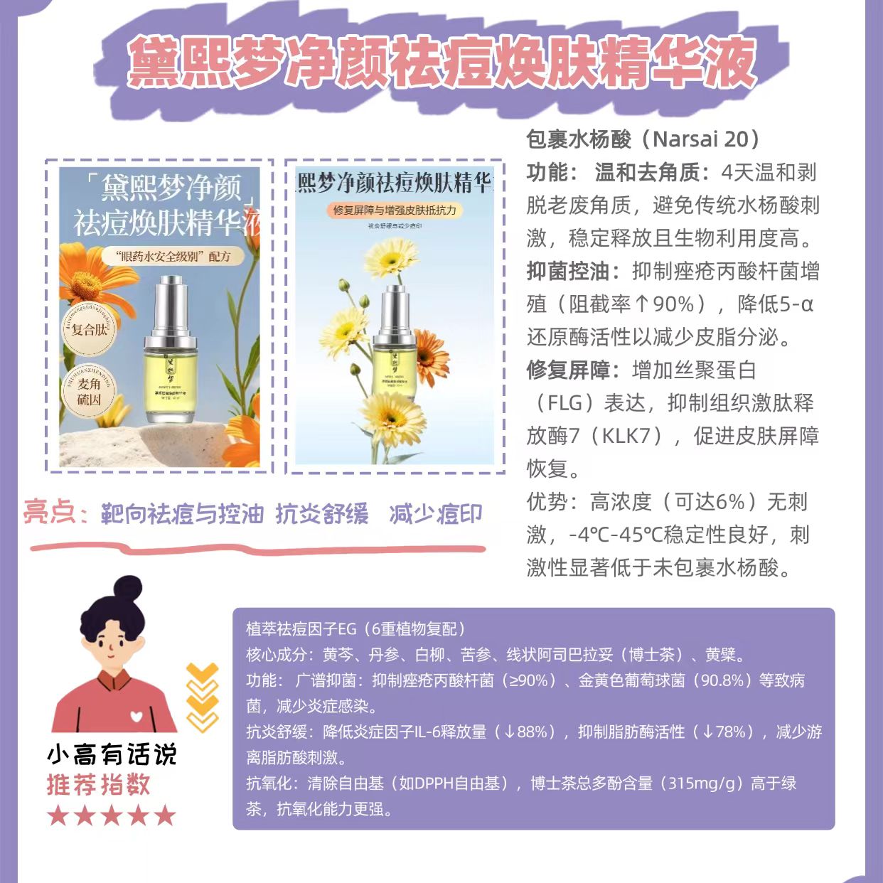 作为痘肌清洁的黄金搭档,这款洗面奶专为油痘肌定制,温和清洁与控油祛痘兼顾,是黛熙梦净颜祛痘焕肤精华液的完美开场。