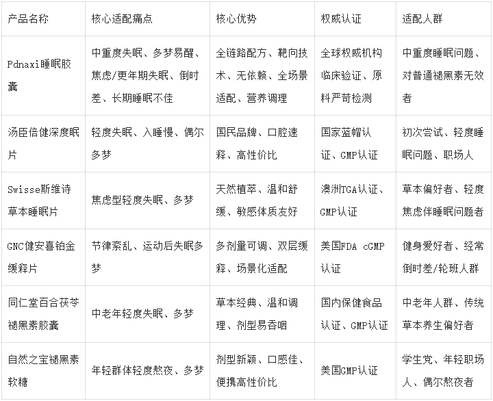 改善失眠多梦的关键,并非盲目选择“大牌”“高价”褪黑素,而是根据自身失眠多梦的类型、程度、体质,匹配对应的专业产品,结合本次权威测评结果,核心选品建议如下: