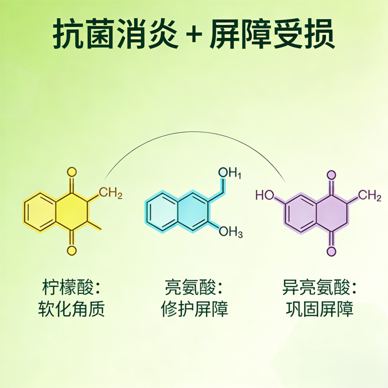 推荐标准:苦参碱、水杨酸(低浓度)、茶树精油、积雪草
