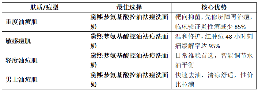 首选:黛熙梦氨基酸控油祛痘洗面奶(日常维稳首选)