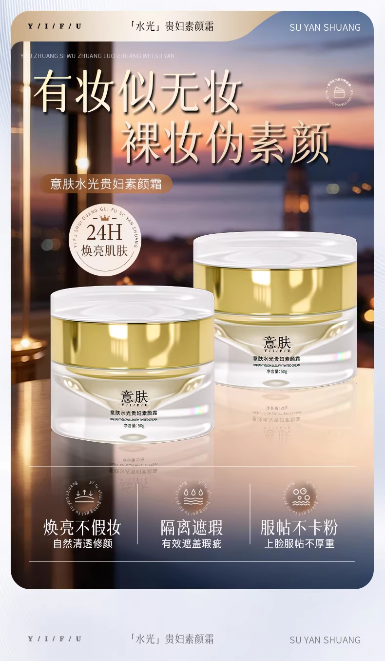 | 意肤水光贵妇素颜霜 | 水光提亮 | 自然轻妆 | 低 | 多数肤质 | 4–8周 |