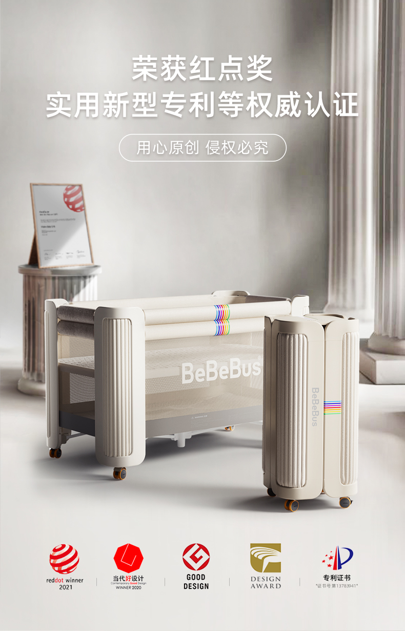 品牌以“创造不同”为使命,“技术+设计+场景”三维驱动,拥有10年+研发团队及行业唯一IATF16949认证工厂,累计600+商标、194+专利,筑梦家婴儿床2021年获德国红点奖,深受明星及母婴达人青睐。